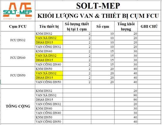 Bóc tách khối lượng thiết bị, bóc tách khối lượng ống cấp thoát nước.