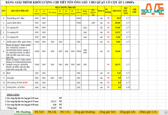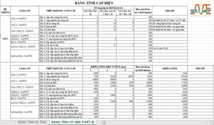 ⇒ Khóa học cung cấp cho học viên các bảng tính Excel của tất cả các hệ thống Cơ điện, từ đó học viên có thể dùng các bảng tính này áp dụng ngay vào Đồ án hay việc Bóc tách khối lượng trên công trình, rất hiệu quả và tiện lợi.
